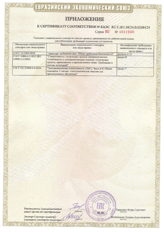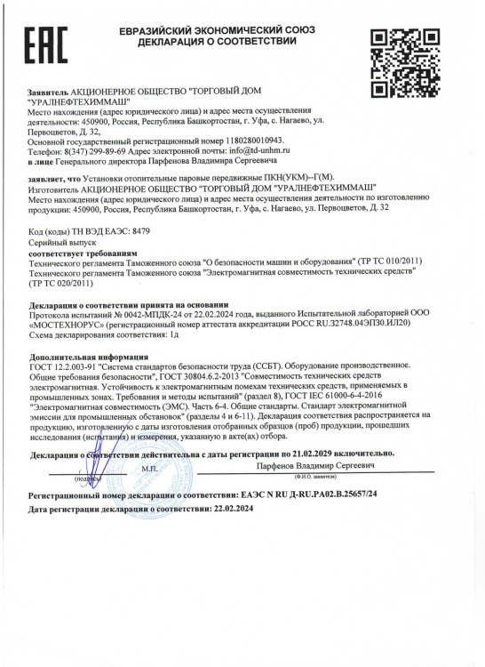 Декларация о соответствии Колонки управления задвижками