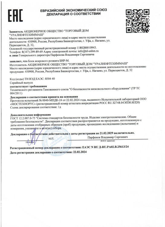 Декларация о соответствии Колонки управления задвижками