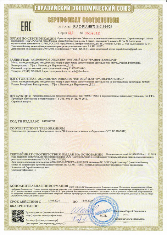 Сертификат Установки УФМС, ГФУ